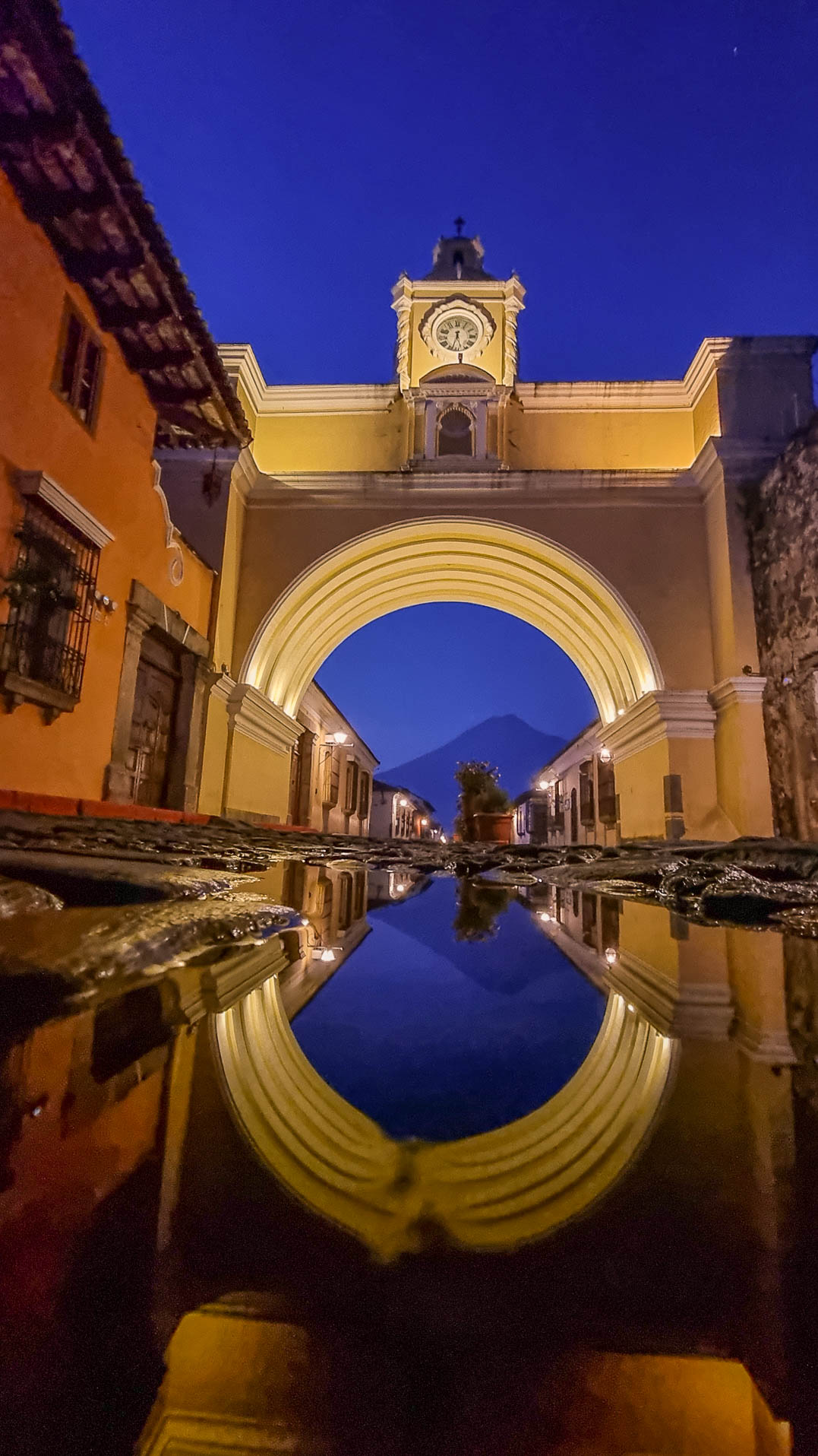 Sesión de foto de amanecer del icónico Arco de Santa Catalina enmarcando al inmenso volcán de Agua.