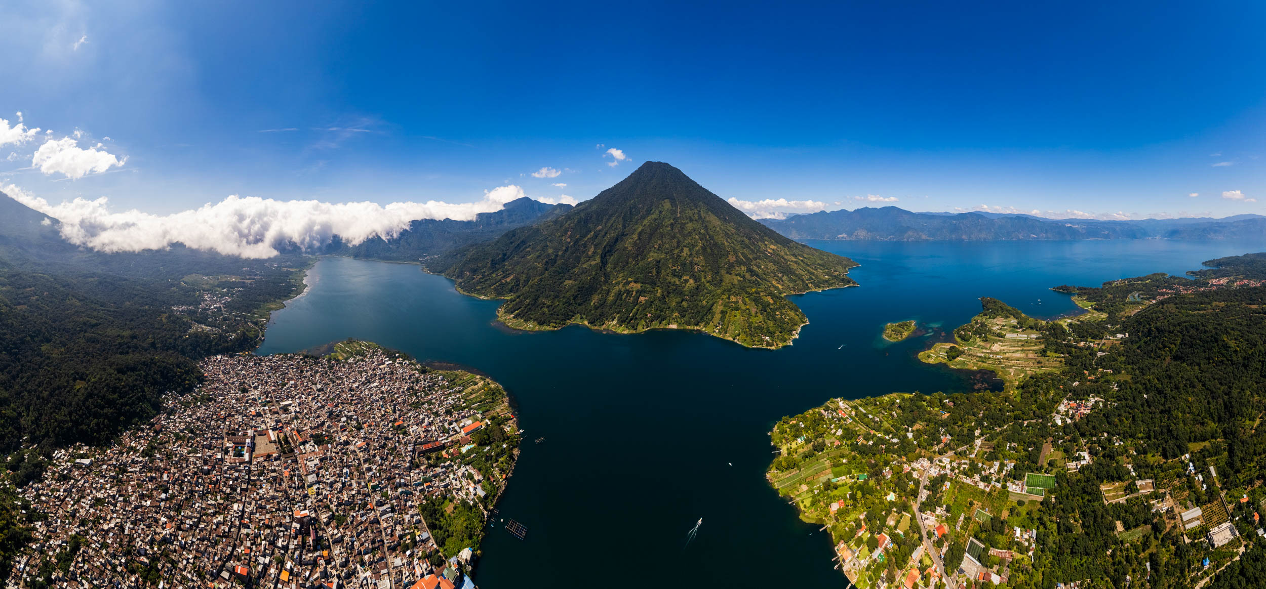Uno de los más grandes de la región, rodeado por una serie de hermosos volcanes y pintorescos pueblos donde se hablan distintas variantes del Maya.