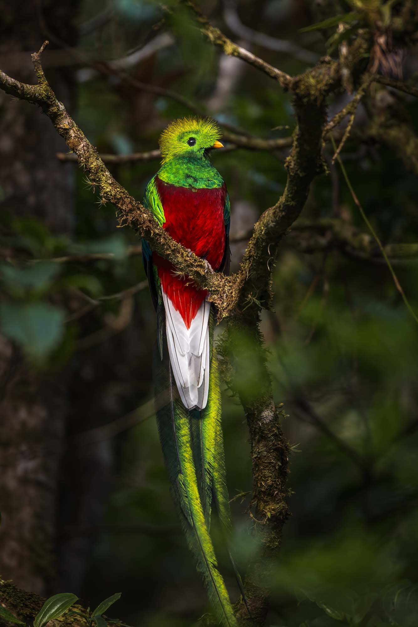 Considerada ave nacional de Guatemala, es con seguridad una de las aves más hermosas del mundo. Se trata de una especie en peligro de extinción.