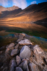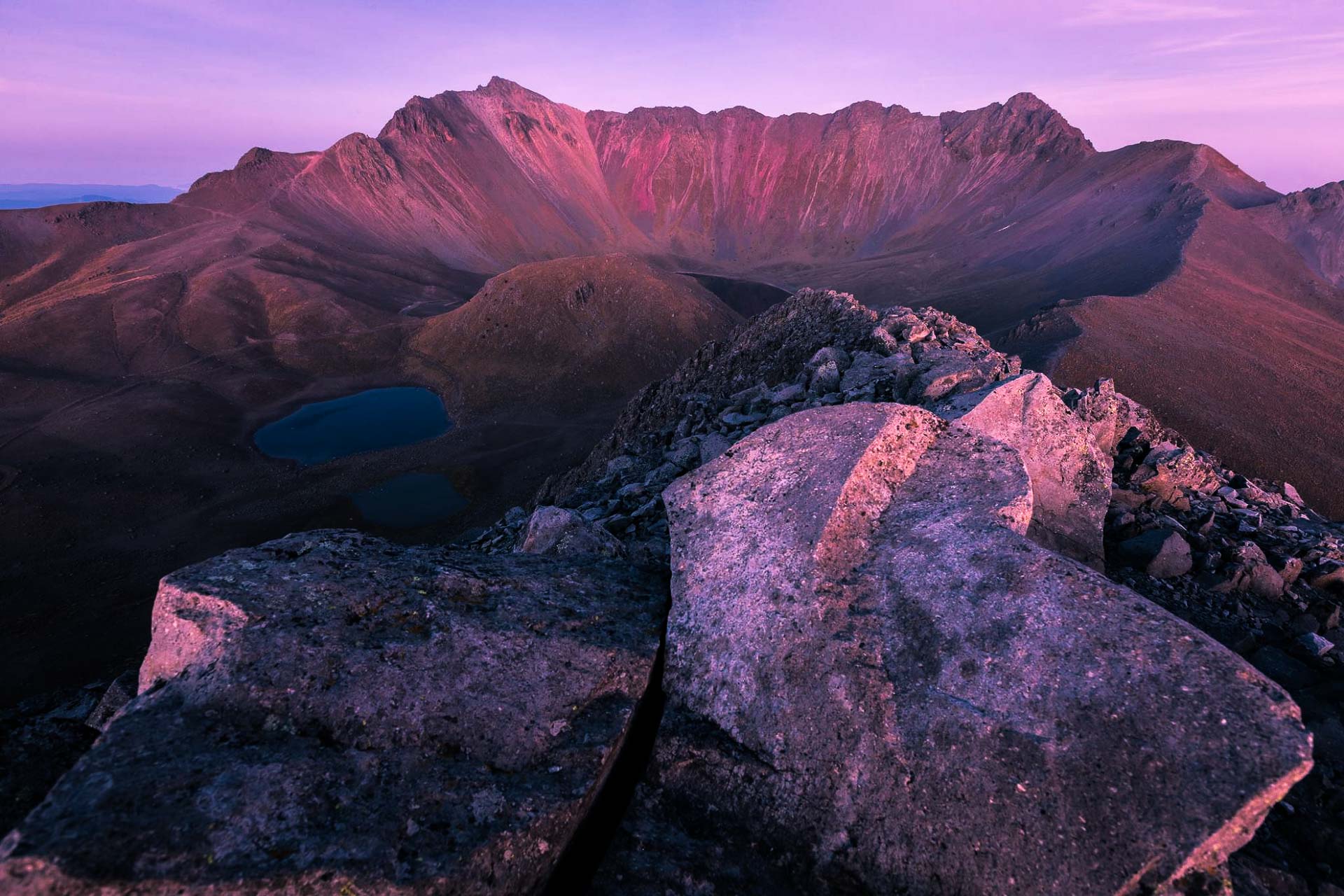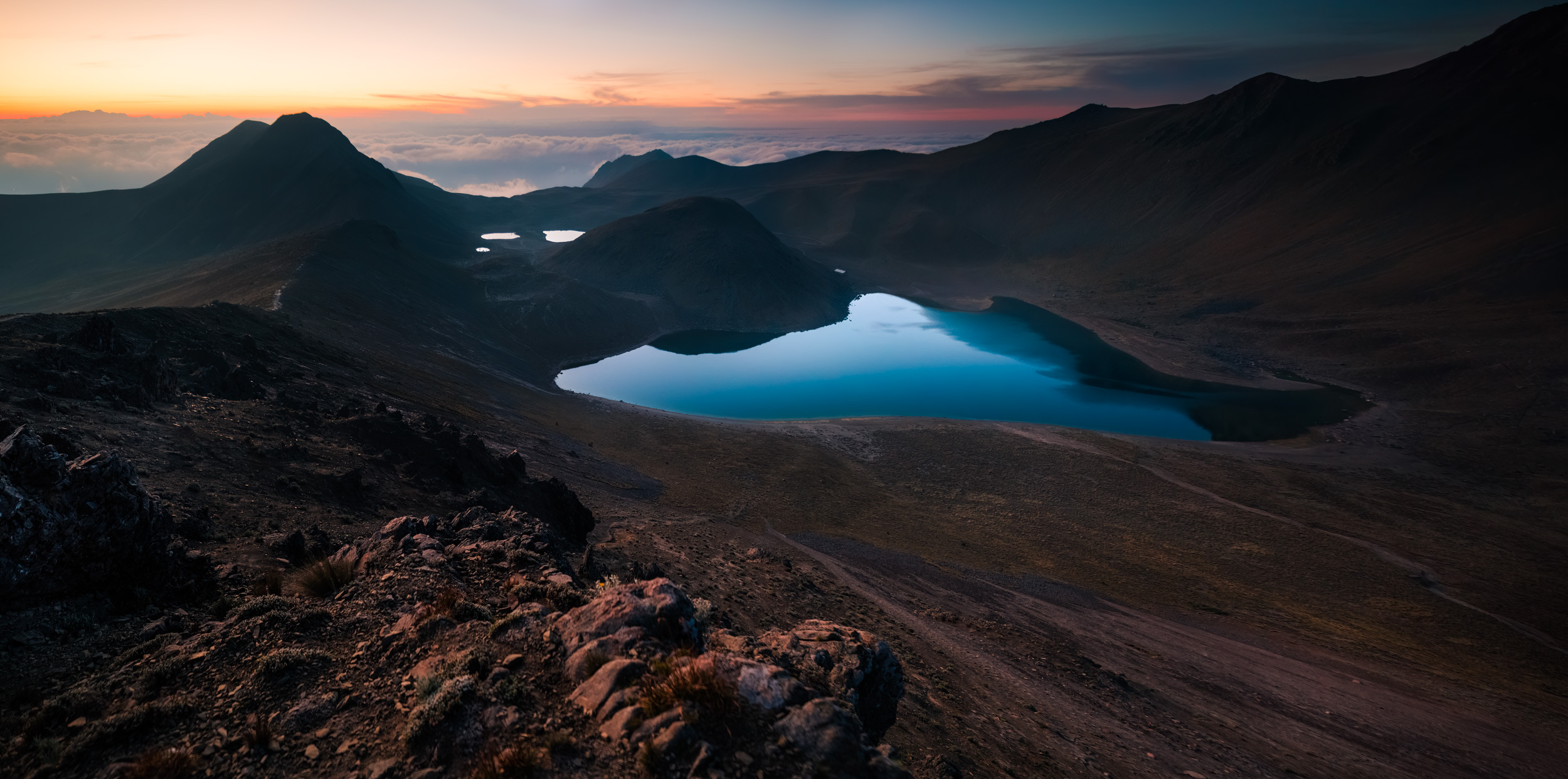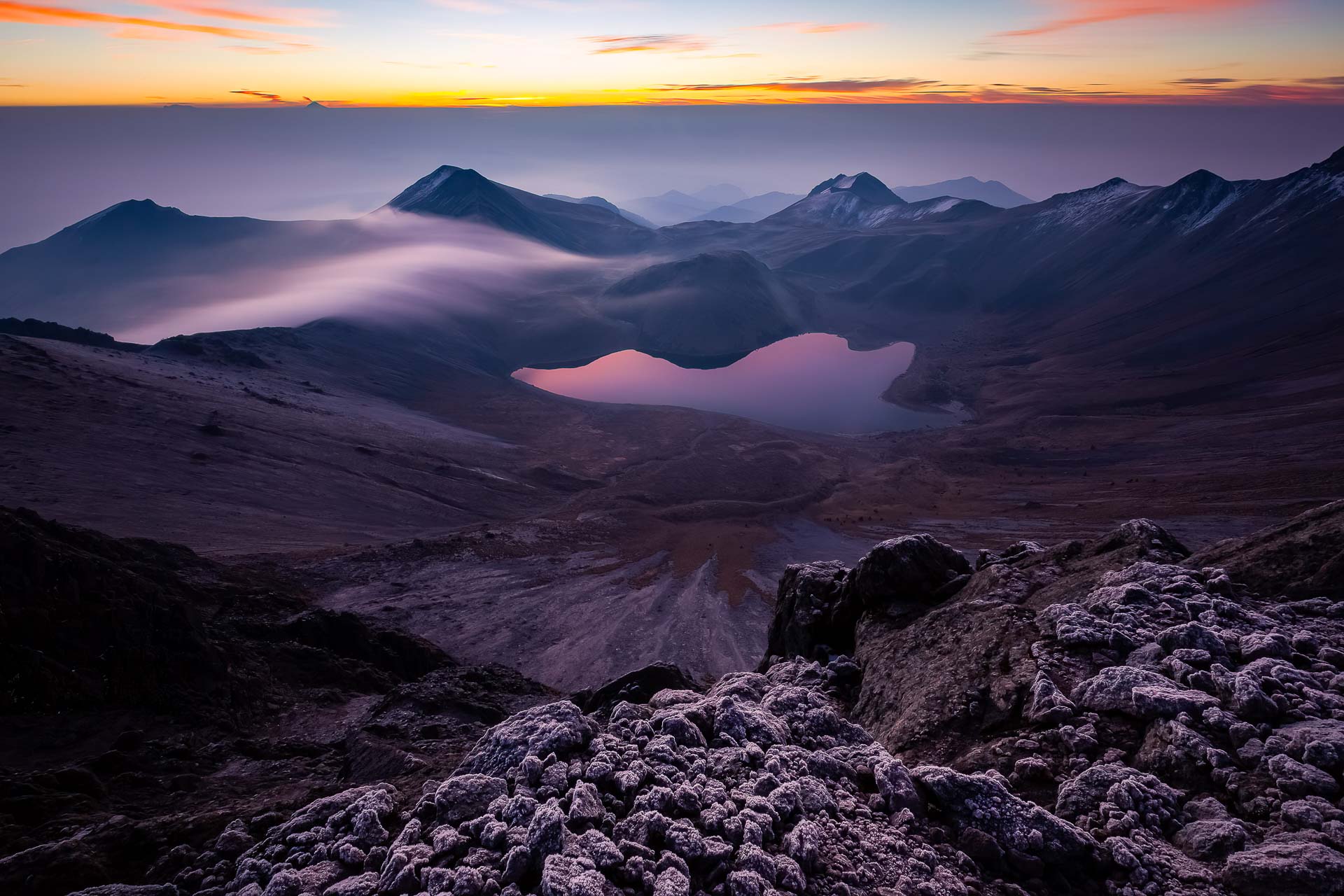 Durante el atardecer y el amanecer, con los radiantes colores de la hora dorada y los tonos fríos de la hora azul, podrás realizar una infinidad de composiciones con las texturas de las rocas, las flores de alta montaña y los reflejos en los lagos como primeros planos. Podrás disfrutar de uno de los cielos más obscuros de la región, y si las condiciones ayudan, podremos retratar la Vía Láctea sobre las icónicas cumbres del volcán