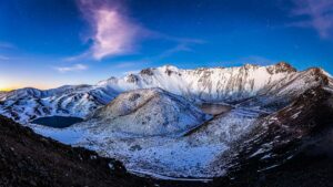 El Nevado de Toluca es una de las montañas más emblemáticas y hermosas del centro de México. Se trata de un Área Natural Protegida, donde la flora y fauna son la prioridad de la conservación. Ha sido motivo de adoración para numerosas culturas, por más de mil años y se han encontrado infinidad de ofrendas precolombinas. La incesante historia geológica de este lugar ha delineado con absoluta belleza el horizonte del Valle de Toluca y ha sido fuente de inspiración para numerosos artistas del paisaje. Este enorme volcán alberga en su cráter dos lagos que se consideran entre los cuerpos de agua a mayor altitud del mundo. Debido a su altura y a su lejanía de las grandes ciudades, este paraje es ideal para la contemplación de las estrellas y para la fotografía nocturna, gracias a la escasa contaminación lumínica.