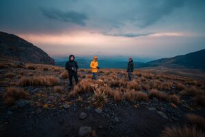Una parte esencial de conseguir una gran foto es estar en lugar y en el momento adecuados, sacrificando con ello un poco de confort. Por ello, la mejor experiencia se tiene acampando en un área segura y resguardada por las autoridades, en las afueras del cráter. Nosotros proveeremos equipo especial para acampar en la montaña, como tienda de campaña, sleeping bag y un bajo sleeping. Las tiendas de campaña tienen una capacidad para 2 personas. En caso de ir solo/a, nuestro staff elegirá a los participantes que compartirán la tienda, siendo siempre del mismo género. Si tú ya cuentas con tienda y prefieres privacidad, puedes llevarla también.