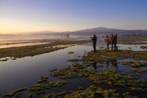 Desde aquí, los volcanes Iztaccíhuatl y Popocatépetl se apreciarán con gran relevancia, permitiendo incluirlos en nuestras fotografías y creando composiciones únicas que resaltan el paisaje y la vida silvestre.